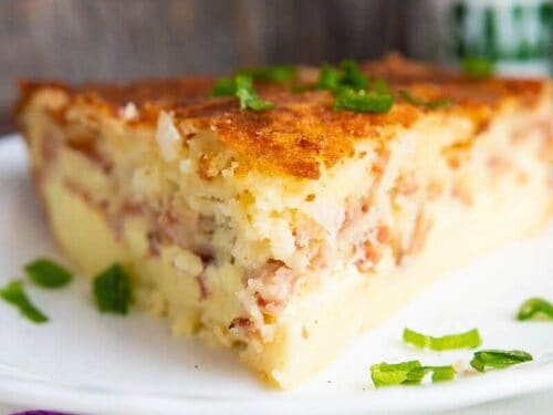 A quiche is an open French tart made with flaky pastry crust thats filled with a savory egg custard often with additions of cheese meat and vegetables inside. Bisquick Chicken Pot Pie. Cook bacon until crisp.